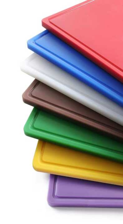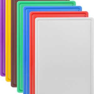 Tábuas de corte grossas e duradouras. O material ajuda a prevenir a perda do gume das facas. Um dos lados com uma ranhura, de modo a prevenir que verta.