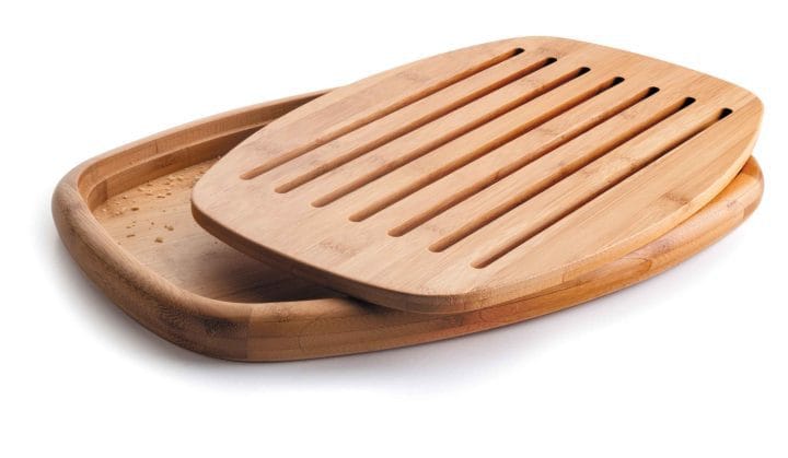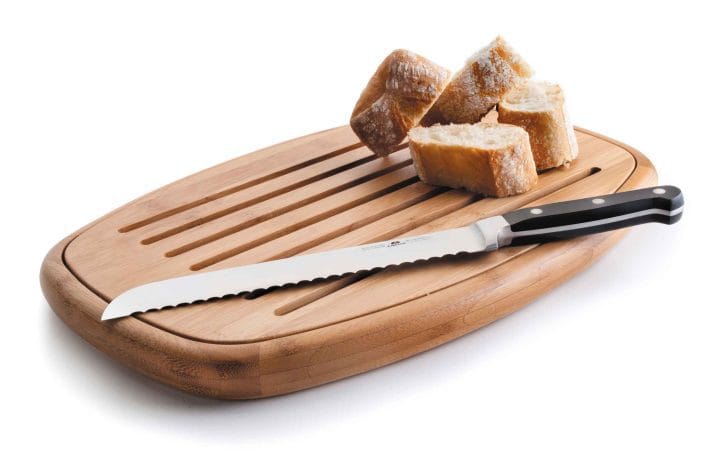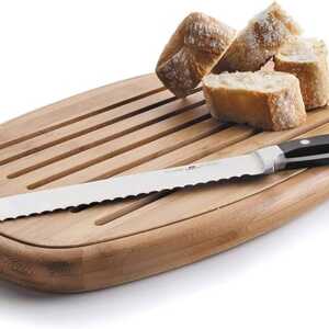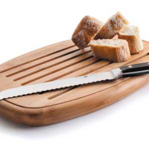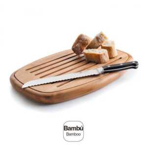 Tabela de corte de pão oval de 40 x 27 x 3 cm fabricado em bambu natural de alta qualidade.