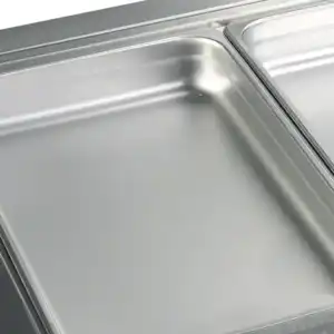 A gama CW de bandejas refrigerados independentes oferece uma forma segura de expor alimentos deliciosos, por exemplo, num buffet. Os bandejas são robustos e discretos, com um design clássico para gastronomia ou restauração, em aço inoxidável SS304. Fáceis de limpar e fáceis de utilizar. Foram concebidos com tamanhos padrão Gastronorm, para que os seus bandejas individuais se encaixem perfeitamente na reentrância da prateleira autónoma.