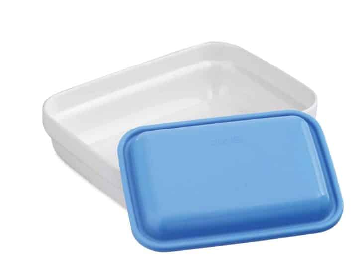 Saladeira retangular de 17×12 cm, com tampa fabricado em policarbonato. Compatível com bandejas isolamento B1 destinadas à distribuição de refeições em hospitais, residências, etc.