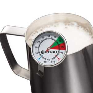 A marca verde indica a temperatura ideal do leite para cappuccino, etc.