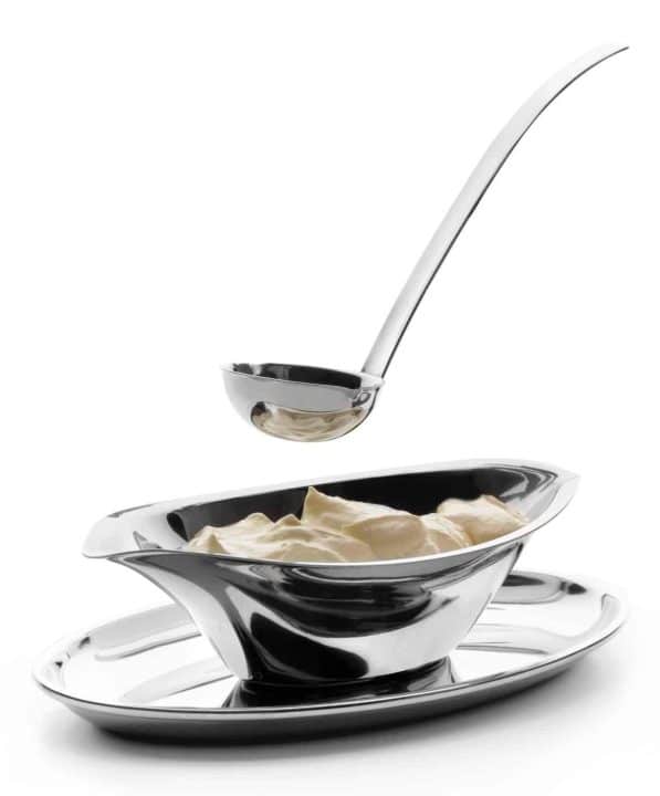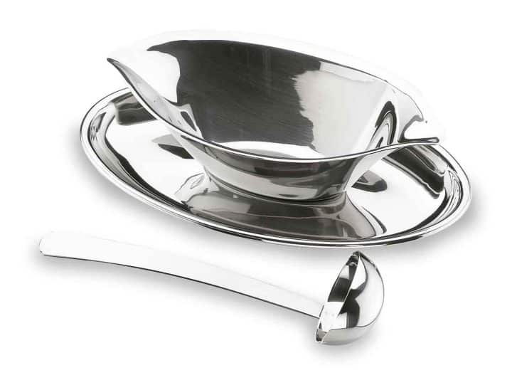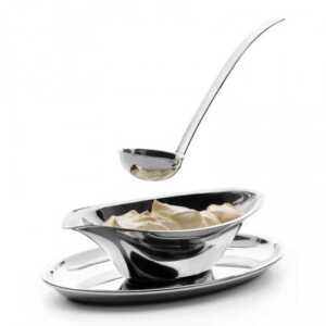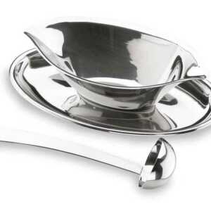 Tigela com cacillo da gama LUXE em aço inoxidável de alta qualidade e alta resistência à corrosão. Capacidade: 200 ml.