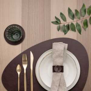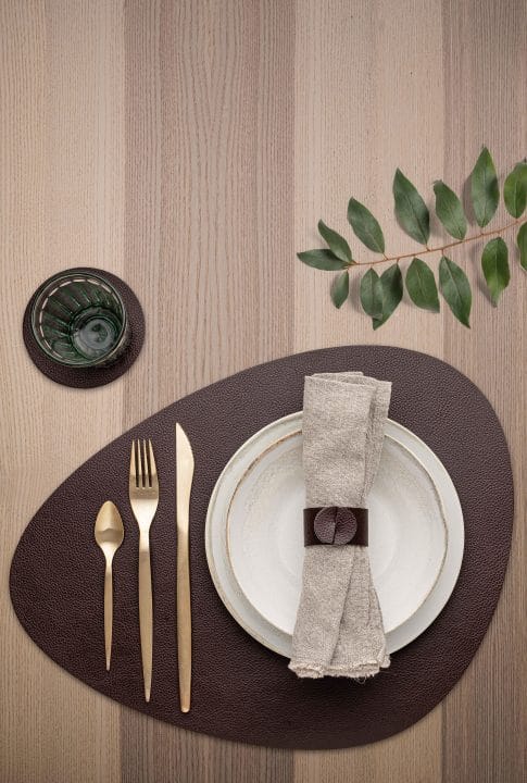 Individual Lacor de 45×35 cm feito de couro granulado marrom 100% reciclado com uma espessura de 2,1 mm, Higiênico e fácil de limpar com solução hidroalcoólica.
