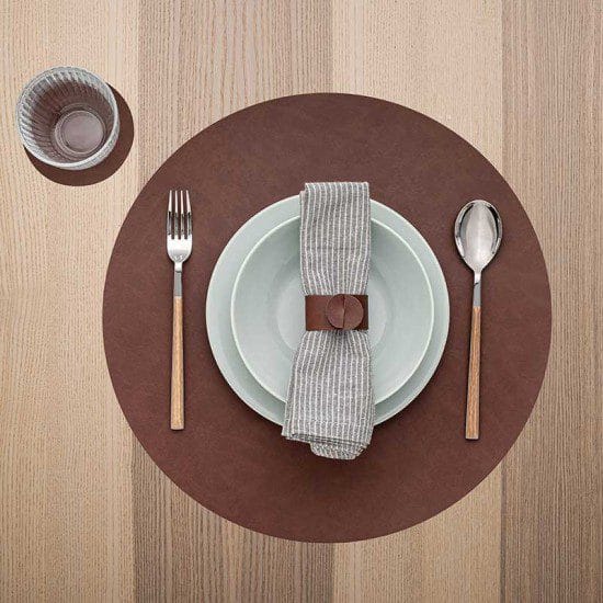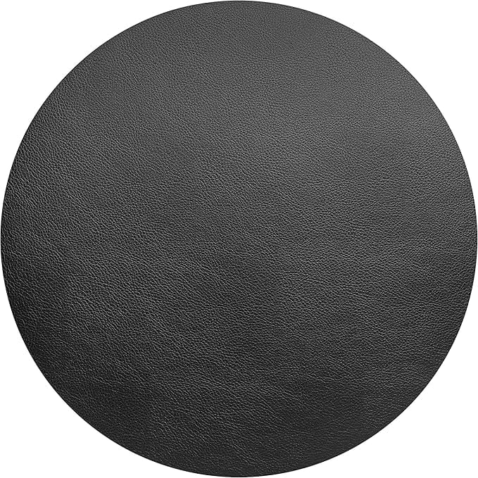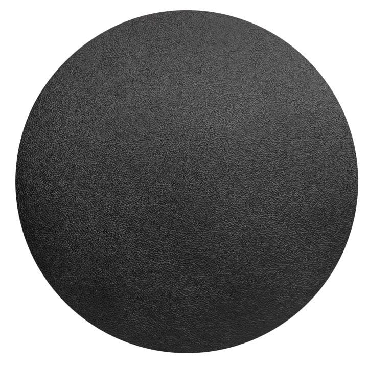 Individual redondo de 40 cm feito de couro granulado preto 100% reciclado com uma espessura de 2,1 mm, Higiênico e fácil de limpar com solução hidroalcoólica.