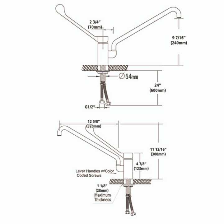 Descrição: Torneira monocomando de 2 águas com alavanca longa. Bica giratória Ø 20 mm, comprimento 320 mm