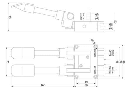 Modelo G2P2S E de duplo pedal: 2 entradas de água e 1 saída.