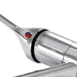 Torneira monocomando com cartucho cerâmico de 40 mm de diâmetro.