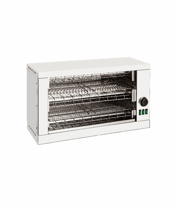 Torradeira profissional dupla com sem temporizador e com capacidade para 16 fatias.