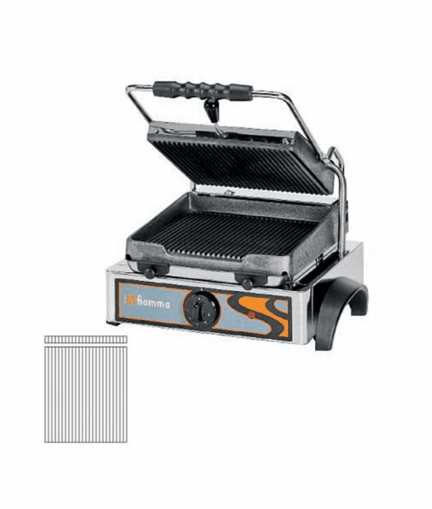 Tostadeira com placa inferior e superior nervuradas em ferro fundido.