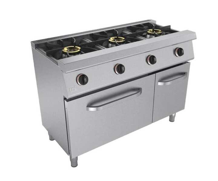 Fogão a gás com 3 queimadores, forno a gás e armário com uma porta, 1 grelha e 3 guias com 400x530mm.