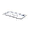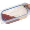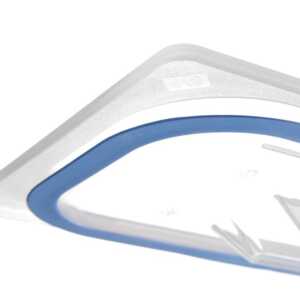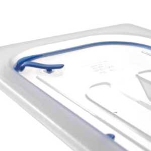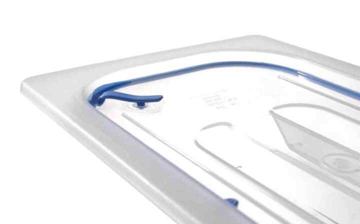 Tampa com vedação hermética em santopreno; a vedação é suficientemente justa para evitar fugas quando o recipiente é inclinado.