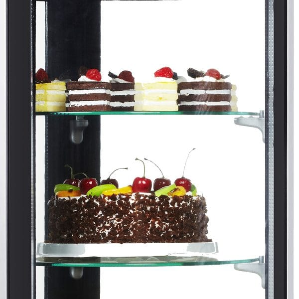 É uma vitrina de 360º, ideal para a apresentação de todos os tipos de bolos, snacks, pastelaria, fruta, saladas, sanduíches, etc