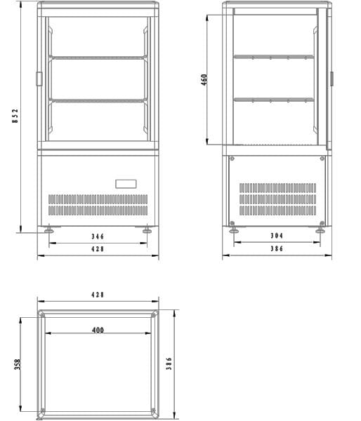 Suas dimensões reduzidas o tornam um vitrine versátil e leve, ideal para instalação em diferentes tipos de instalações de serviço rápido, supermercados e restaurantes