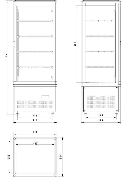 Suas dimensões reduzidas o tornam um vitrine versátil e leve, ideal para instalação em diferentes tipos de instalações de serviço rápido, supermercados e restaurantes