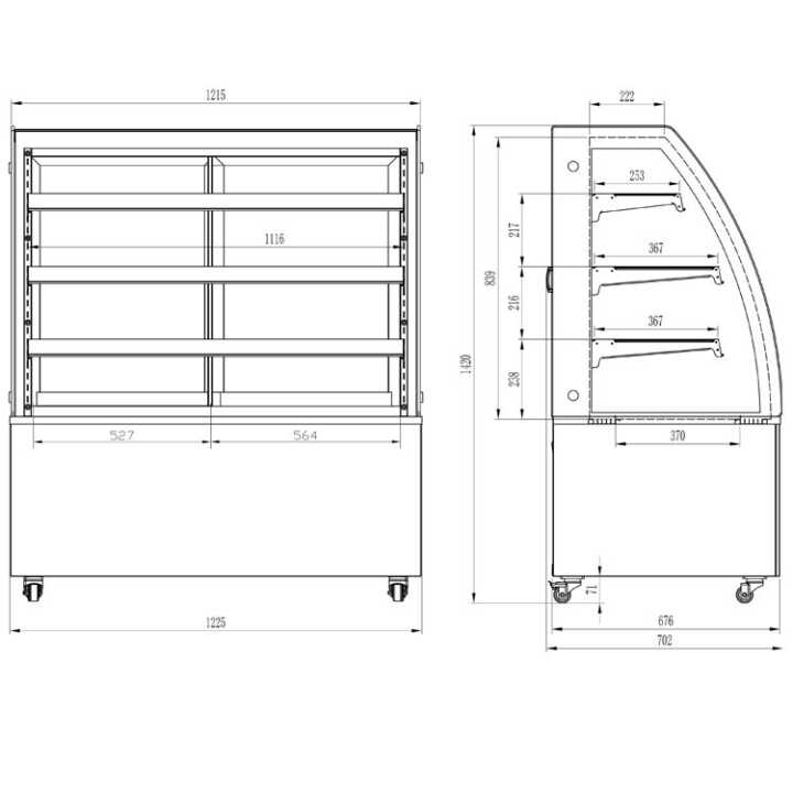 O modelo VERM-1000-C é uma vitrine montada na parede, sem portas dobráveis traseiras e aberta no lado do cliente