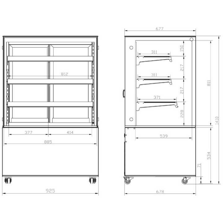 Base do armário de exposição inteiramente feita de aço inoxidável