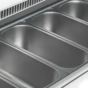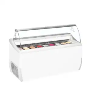 A gama de congeladores de gelados UDRS faz parte da gama de congeladores premium da TEFCOLD. Oferece uma elevada qualidade e um design elegante, com uma parte frontal mais baixa que garante uma excelente visibilidade do gelado. A arca congeladora possui tampas de vidro deslizantes que ajudam a isolar e a poupar energia quando não se serve o gelado sobre o vidro protetor angular. Naturalmente, é adequado para bandejas Napoli (não incluídos).