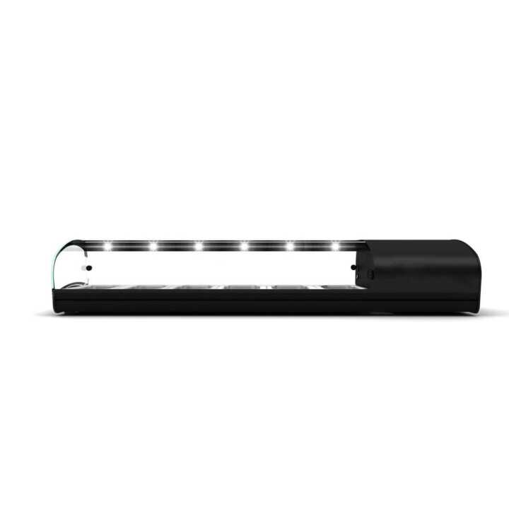 Vitrine refrigerada equipada com tecnologia de eficiência energética, economiza até 50% de energia. Desempenho máximo com consumo mínimo (economia de até 50%). Vidro rebativel para fácil limpeza. Cobertura de vidro vitrificado resistente a choques, fricção, ácidos e detergentes comuns. Portas de correr para facilitar a extração e limpeza. Iluminação Leds. Dobradiça frontal invisível. Termostato eletrônico ajustável com leitura digital constante. Cuba embutida em aço AISI304. Sensores ocultos para fácil limpeza. Fabricado em aço inoxidável AISI304 e vidro temperado.8 bandejas gastronorm GN1/3×40 AINSI INOX incluídas.