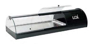 Vitrina especial com portas dianteiras e traseiras dobráveis para facilitar a função de self-service.