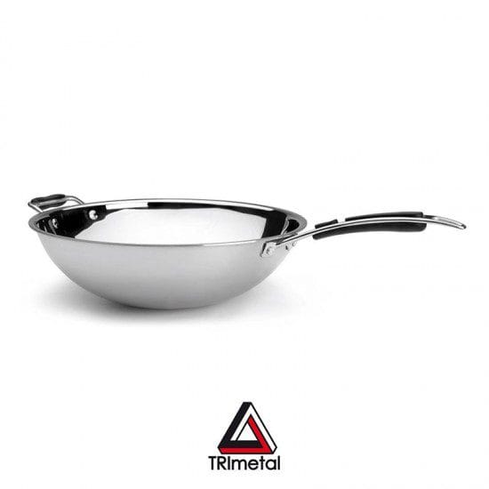 Wok trimetal fabricado com três camadas de metal de primeira qualidade, como se detalha a seguir: